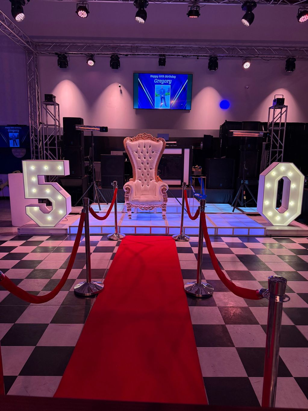 Red carpet, red ropes, and stanchions for a grand entrance